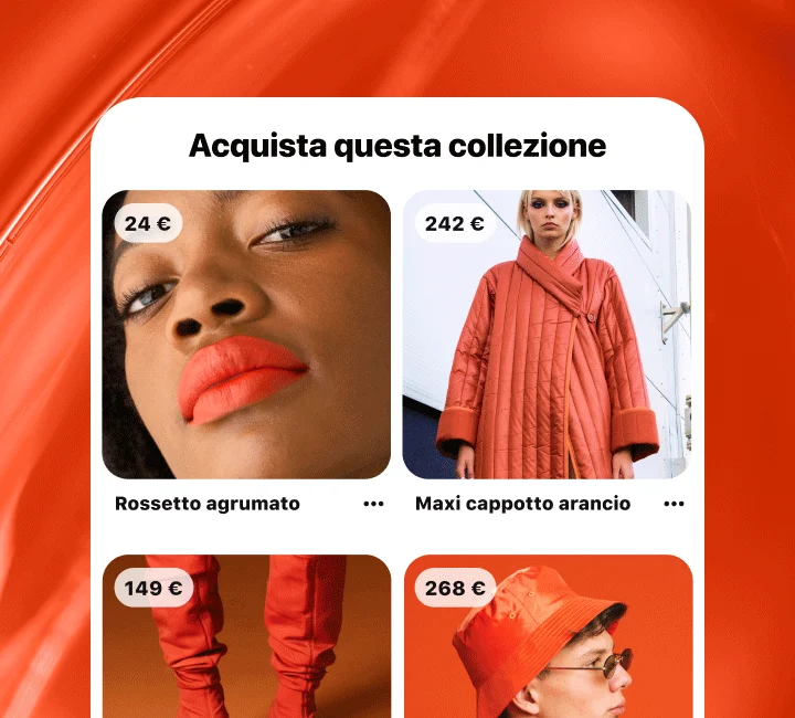 Punta tutto su un colore di tendenza per presentare un look audace e monocromatico nei tuoi annunci di Pinterest. Usa le collezioni o i caroselli per trasformare il feed in una pagina colorata e accattivante.