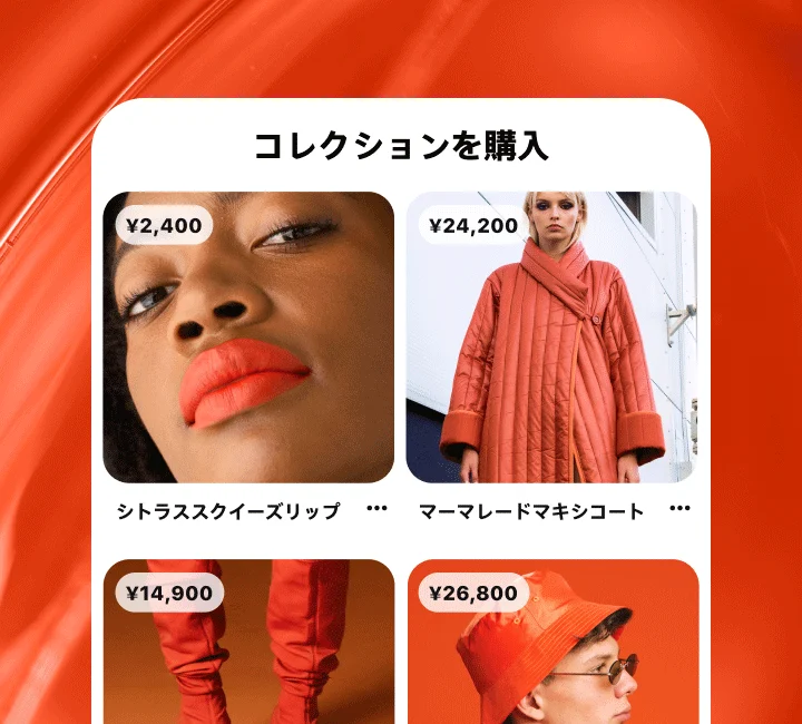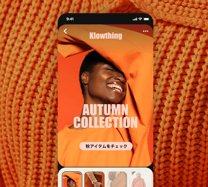 キャンペーンのクリエイティブを季節に合った色合いに。特定のカラーとブランドのテーマを関連づけたルックブックやショッピングガイドを作成してみましょう。例えば、秋のインテリアには「パーシモンオレンジ」を、春の新生活シーズンには「ワサビ」を活用できます。