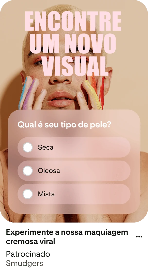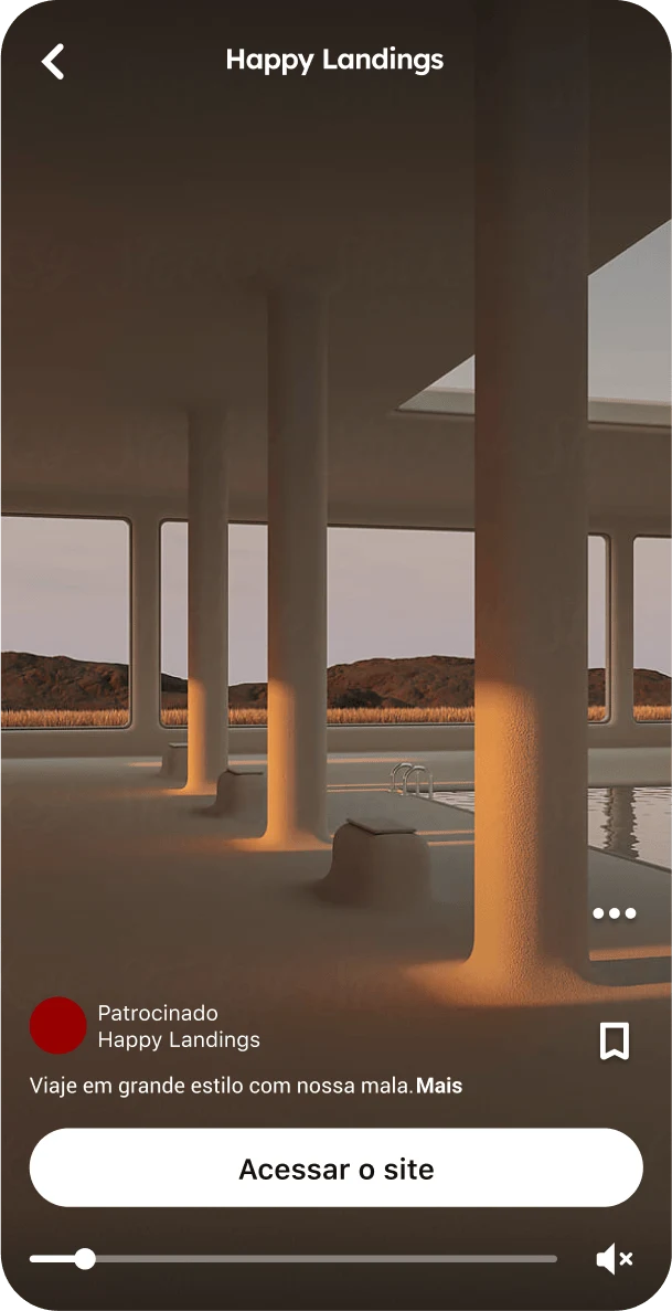 O Pinterest oferece diferentes formatos de anúncio, e as especificações dependem de cada formato. Use o guia de especificações acima para garantir que seus ativos sejam carregados e exibidos corretamente.