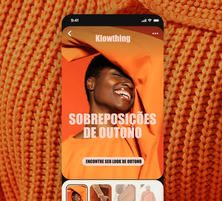 Aposte numa cor-tendência pra criar um visual monocromático para o seu anúncio no Pinterest. Use coleções ou carrosséis pra transformar o feed numa tela colorida.